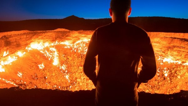 CentralAsia (TM) - Горящий кратер «Дарваза» в Туркменистане, более известный как «Врата ада», имеет размер футбольного поля. Огонь в нем горит вот уже 50 лет.