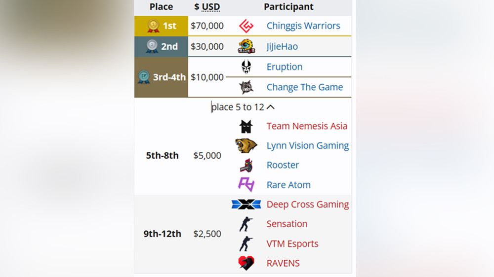 Монгольская команда Chinggis Warriors одержала победу на турнире eXTREMESLAND 2025, забрав домой трофей и приз в размере $70 000. Китайская команда JiJieHao заняла второе место и получила $30 000 Другая монгольская команда, Eruption, заняла третье место и получила $10 000. Четвертое место досталось китайской команде Change The Game, которая также получила $10 000.