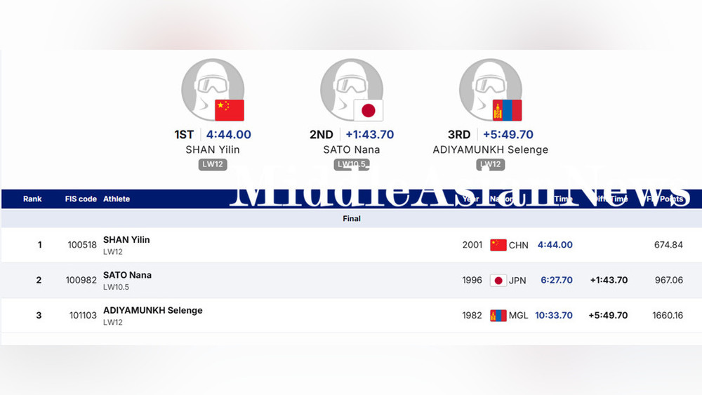 Тем временем Сэлэнгэ стала первой монгольской женщиной, прошедшей квалификацию на Паралимпийские игры. Она прошла квалификацию, завоевав бронзовую медаль в паралимпийских соревнованиях по лыжным гонкам на Кубке Азии в Японии в этом году. На этом турнире китайская лыжница Шан Илин завоевала золото, японка Сато Нана – серебро.