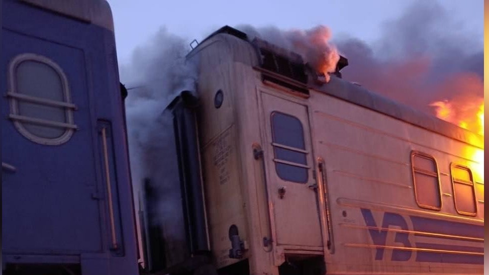 Как сообщает Харьковская областная прокуратура, два дрона упали рядом с составом, третий - попал в вагон. Произошел пожар.