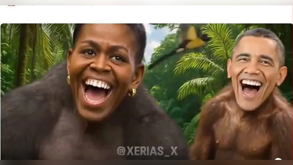 В видеоролике, посвященном президентским выборам 2020 года, супруги Обама изображены в виде обезьян. Видео было опубликовано в четверг вечером и к утру пятницы набрало несколько тысяч лайков.